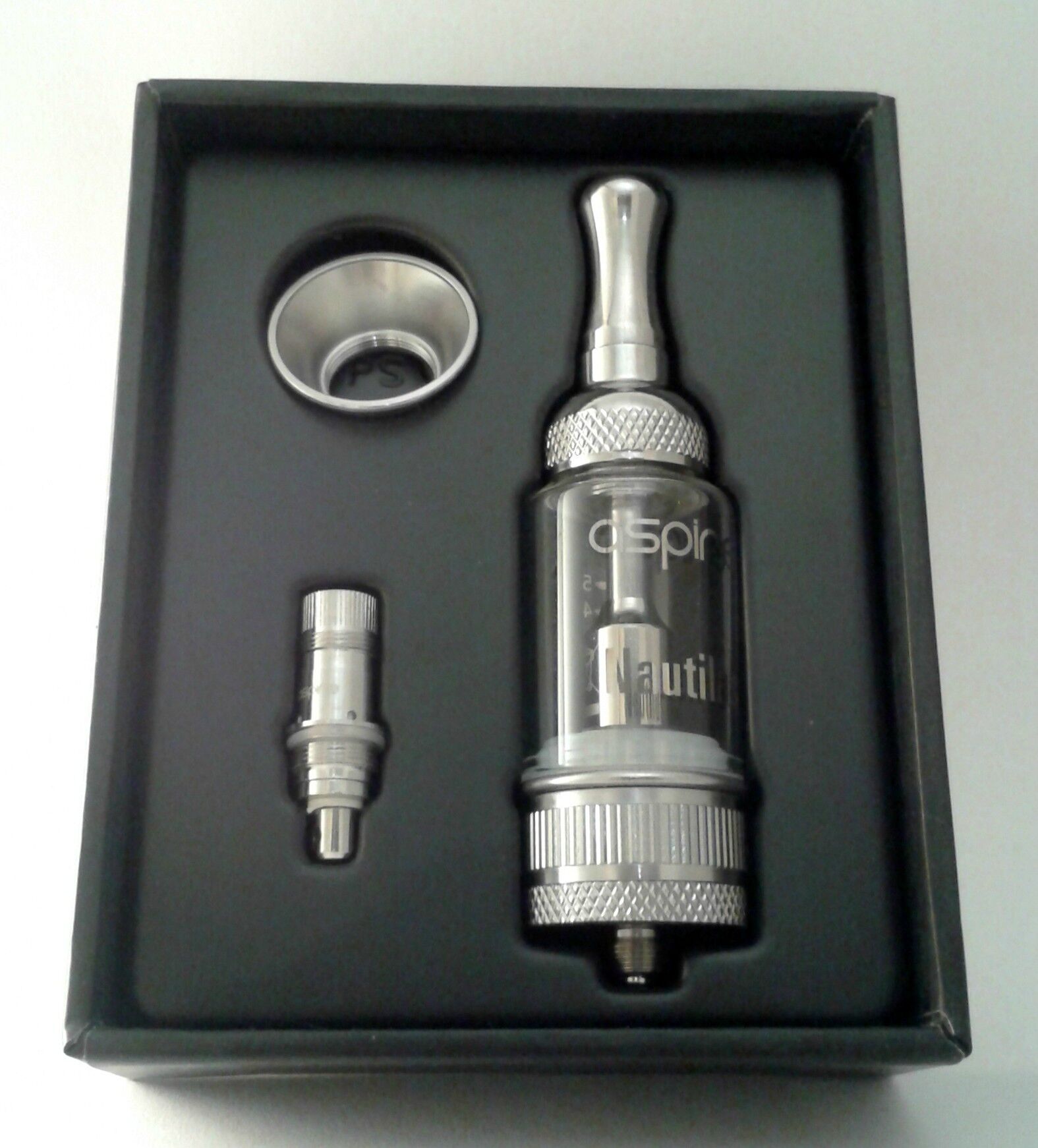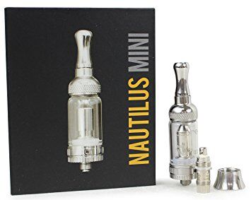 Voici un très beau clearomiseur « old school » au look acier vieilli. Livré dans son coffret avec résistance de rechange et bague de finition. Le Nautilus est un gros clearomiseur livré avec 2 résistances de type BVC de Aspire. Souvent un remplissage du réservoir suffit largement pour une journée ! La qualité gustative est très correcte. Ce clearomiseur ravira les amateurs de vape indirecte !