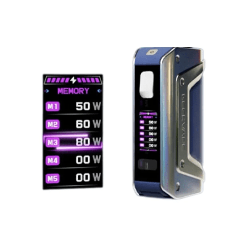 La Box Aegis Legend 3 Geek vape est dotée d’un écran couleur lumineux, offrant une interface intuitive qui affiche clairement toutes les informations nécessaires : niveau de batterie, mode de vape, puissance sélectionnée, etc. L’utilisation est fluide et permet de personnaliser facilement ses réglages pour une expérience de vapotage