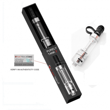 Le Purely tank de Fumytech est un clearomiseur fait pour de la vape indirecte. Le drip tip est protégé par un capuchon, bien pratique pour éviter l’introduction de poussière et autres particules. Les résistances de 0.7 et 0.9 ohms de type BVC procurent une bonne quantité de vapeur. Ce clearomiseur peut contenir 3 ml de liquide. Il est muni d’un système « air flow » afin de régler le tirage.
